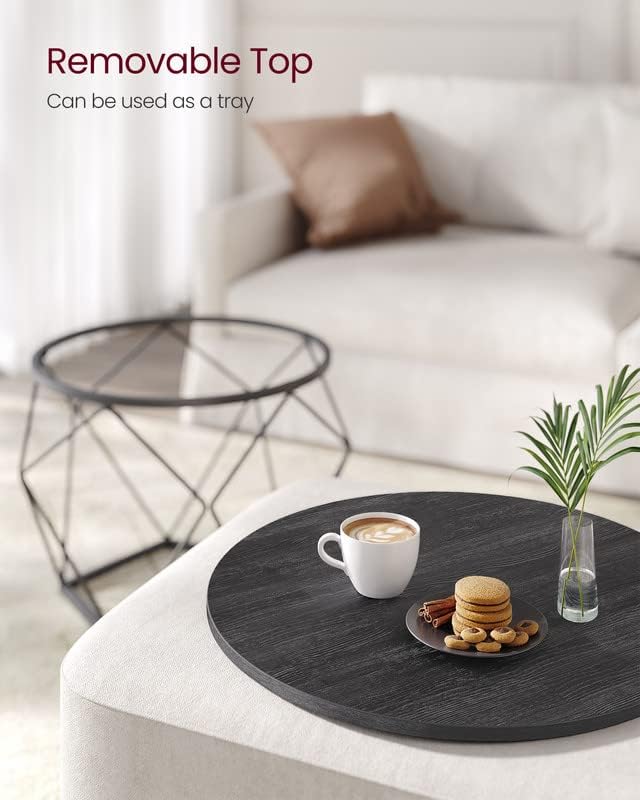 [Use Them Together or Separately] These versatile side tables can be used in a variety of ways. Together for a harmonious look in the living room, or separately with one beside the sofa and the other in the bedroom - [Modern Style] These modern-style coffee tables for your living room bring a special touch to your space with round black tops and geometric black steel bases. Their attractive look will impress your guests